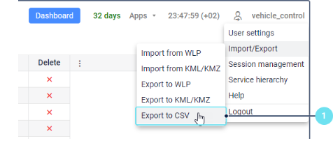 - In the user menu, select the Import/Export item and click Export to CSV.