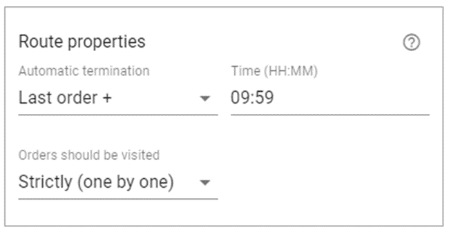 In this section you can configure the automatic termination of routes and the sequence in which orders should be visisted.