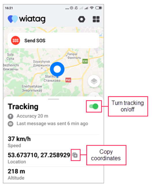 - coordinates of the unit (to copy them, tap the icon