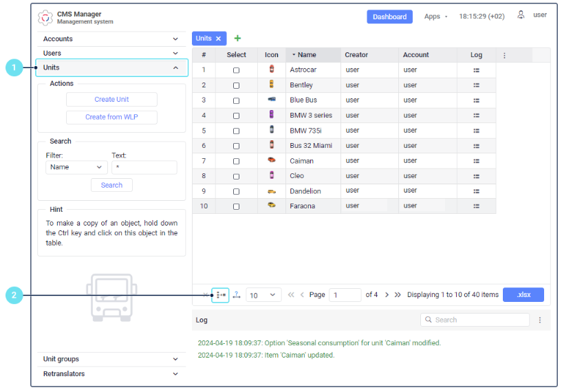 As a result, the account and creator of the transferred units are changed as well as the number of created and available units in both accounts.