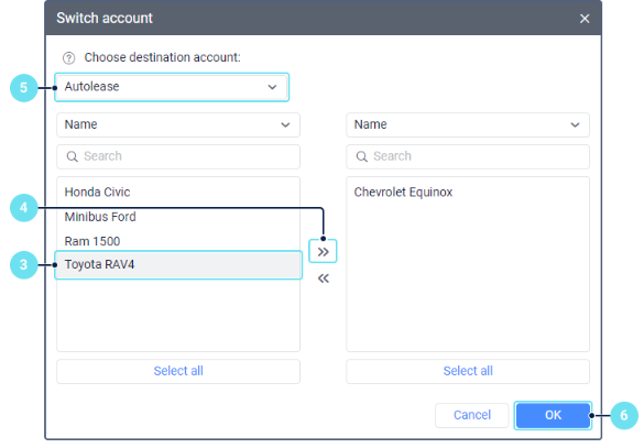 You can transfer units from your account to any subordinate account and vice versa, as well as from one subordinate account to another, even if they are in different branches and at different levels of the hierarchy.